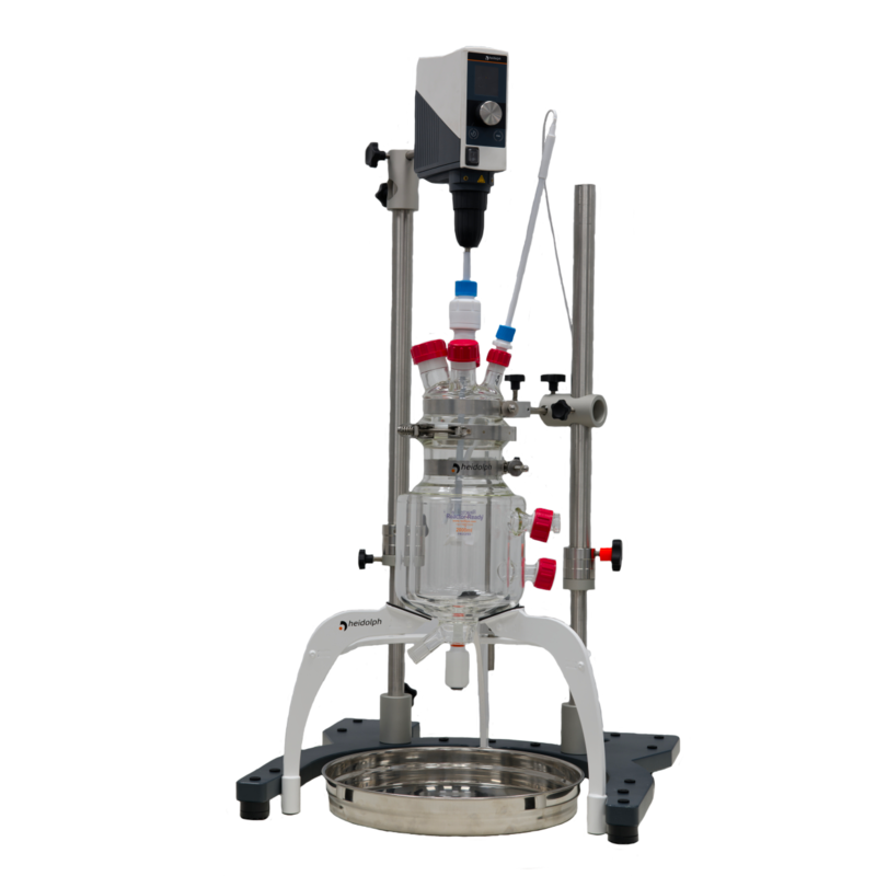 - The Hei-REACT Reactor Framework as a basis for every application. Offers outstanding stability for the reactor vessel and unique ease of use, thanks to the swiveling and spring-assisted telescopic rods. The frame also includes a drip tray.
